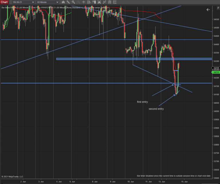 It broke the support it was a support on daily basis and normally after that a move is expected. So minimum 100 – 150 points or pips is the ym future and the same. But after around 60 points, it looked like a consolidation or maybe they find the bottom. So buyer fight against and stabilized the down move.